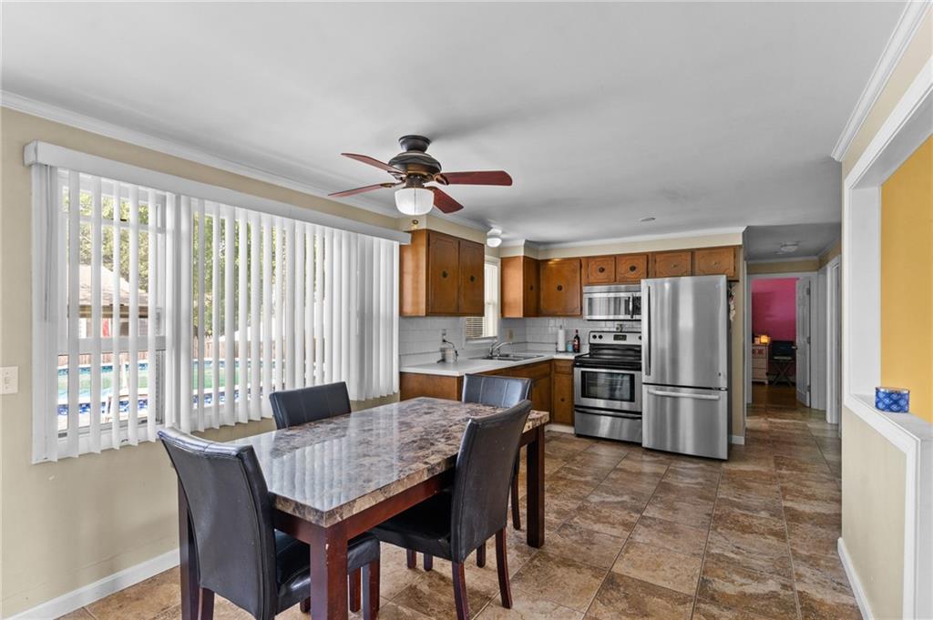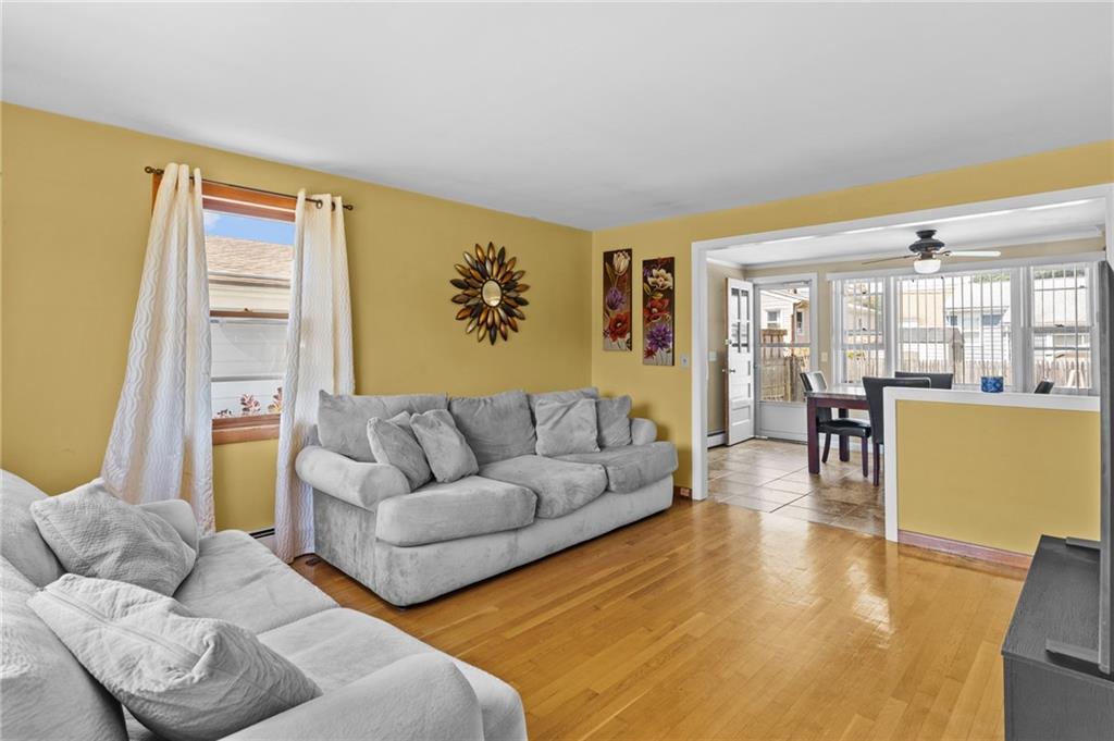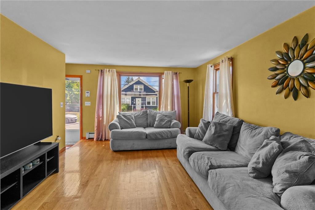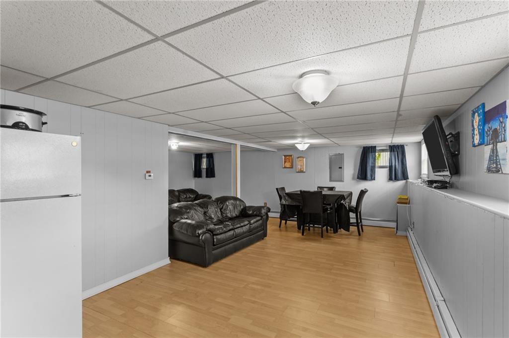 The inviting living room is filled with natural light from large windows and features hardwood floors. The eat-in kitchen is equipped with stainless steel appliances and plenty of cabinet space, opening directly to the dining area for easy entertaining. Step outside to your private backyard, complete with an above-ground pool, perfect for summer gatherings, gardening, or relaxing. Additional highlights include a long driveway for ample parking and a partially finished lower level that offers potential for extra living space, storage, or a home office. With its great location close to schools, shopping, restaurants, and highway access, this home is an excellent opportunity for first-time buyers or those looking to downsize. Don’t miss your chance to make this lovely property yours—